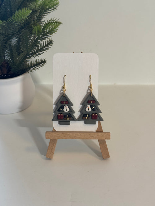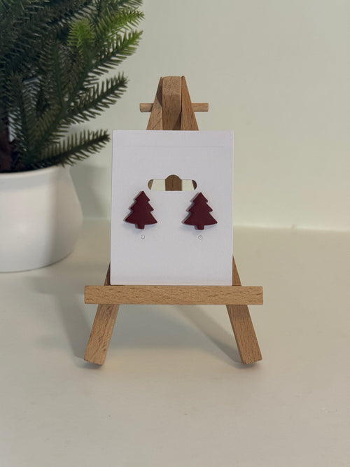 Christmas Tree Studs - Burgundy
